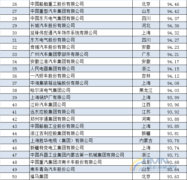 2013年中國機(jī)械500強(qiáng)排名(1-100)