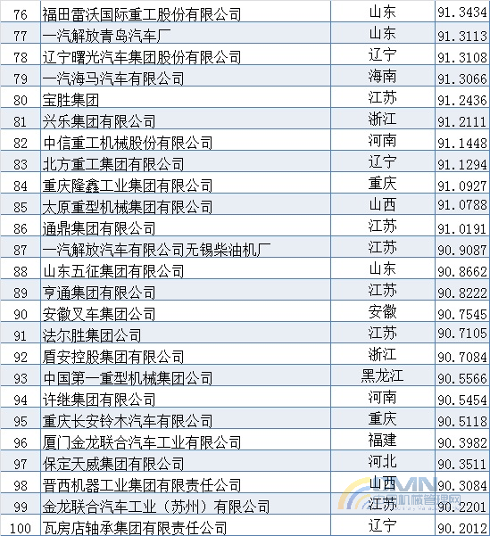 2008年中國機(jī)械500強(qiáng)排名(1-100)