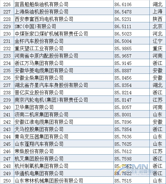 2011年中國(guó)機(jī)械500強(qiáng)排名(201-300)