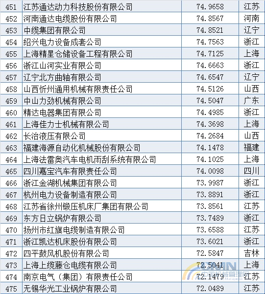 2011年中國機(jī)械500強(qiáng)排名(401-500)