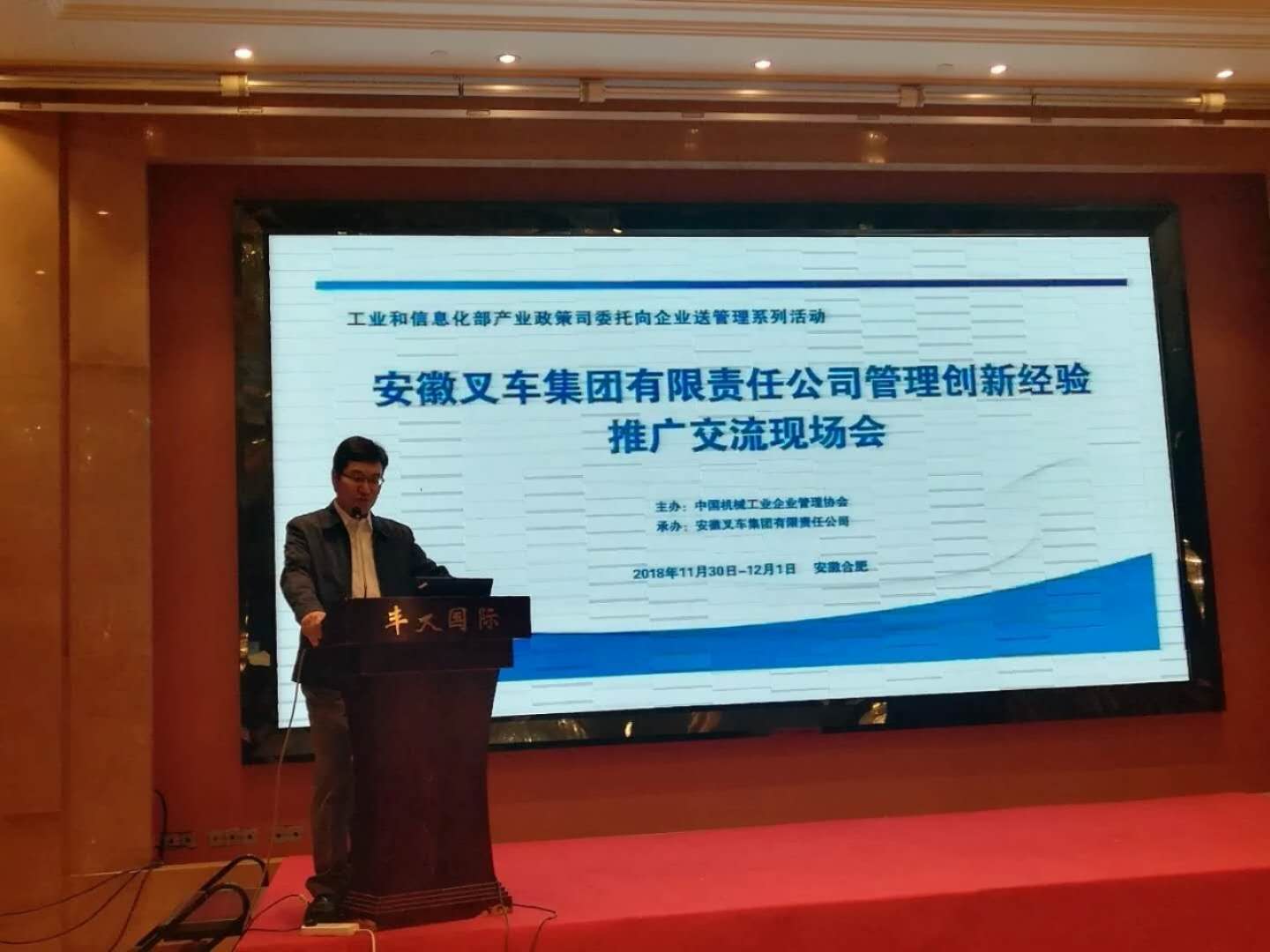 2018年11月29日-12月1日,工信部產(chǎn)業(yè)政策司委托中國機械工業(yè)企業(yè)管理協(xié)會(簡稱中機企協(xié))主辦、安徽叉車集團有限責任公司(簡稱合力)承辦的機械行業(yè)“向企業(yè)送管理”現(xiàn)場交流活動在安徽省合肥市隆重舉辦。工信部產(chǎn)業(yè)司產(chǎn)業(yè)組織處處長匡佩遠,趙薛憶,中機企協(xié)理事長孫伯淮,常務副理事長李玲,副理事長于中赤、張德進、張愛群,以及來自機械行業(yè)的企業(yè)代表180余人參加了活動。