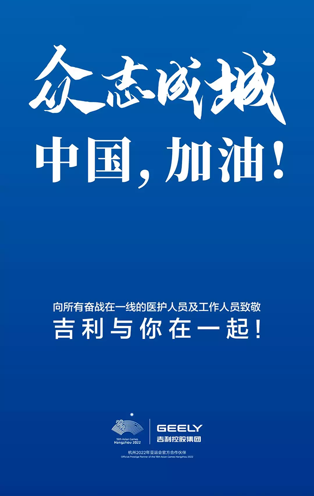 眾志成城,中國加油!所有吉利人都在隨時關注疫情發(fā)展,結合吉利控股集團的全球產業(yè)資源,隨時為戰(zhàn)勝疫情獻上吉利人的微薄之力。