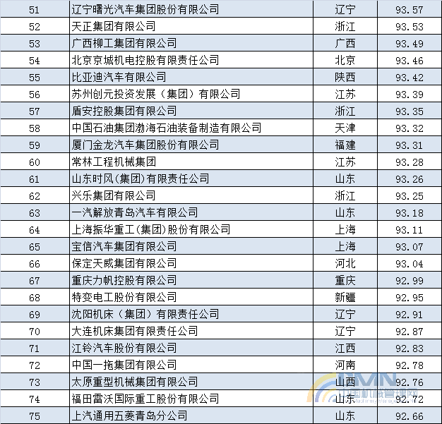 2013年中國機(jī)械500強(qiáng)排名(1-100)