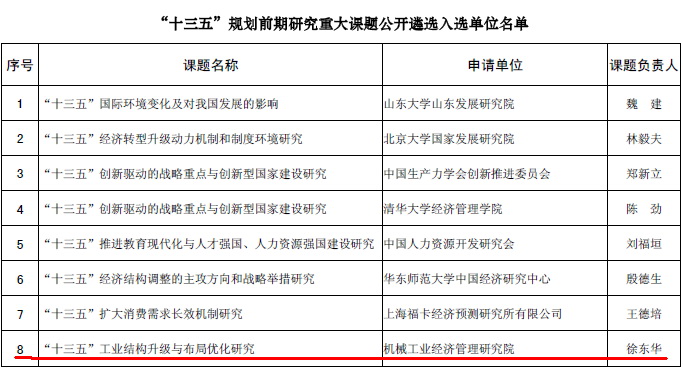 中國機械管理網(wǎng)訊 近日,我院繼獲得國家發(fā)展改革委“十二五”規(guī)劃前期重大課題后,又一次榮獲國家發(fā)改委“十三五”規(guī)劃前期重大課題——“十三五”規(guī)劃工業(yè)結(jié)構(gòu)升級與布局優(yōu)化研究。