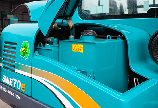 SWE70E升級(jí)通用化油箱,液壓油箱的吸油、回油濾芯與全系小挖均通用,濾芯更換方式簡(jiǎn)單快捷,燃油箱加油口加大,加油更快速,鎖蓋加強(qiáng)加大,油箱更安全。
