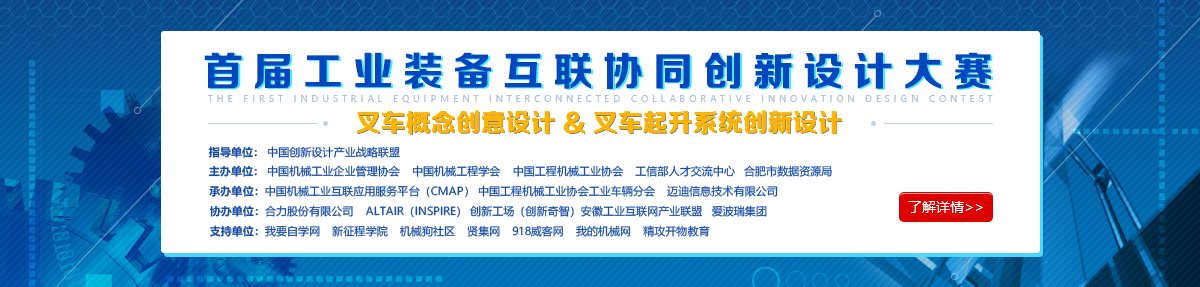 首屆工業(yè)裝備互聯(lián)協(xié)同創(chuàng)新設(shè)計(jì)大賽--叉車專題賽,是一項(xiàng)推動(dòng)中國制造走向中國智造的大型網(wǎng)上工業(yè)設(shè)計(jì)競賽活動(dòng)。旨在利用互聯(lián)網(wǎng)信息技術(shù)和先進(jìn)IT、AI設(shè)計(jì)軟件,聚合眾多優(yōu)秀設(shè)計(jì)工程師和設(shè)計(jì)專業(yè)人士及企業(yè)設(shè)計(jì)團(tuán)隊(duì),在制造業(yè)互聯(lián)應(yīng)用服務(wù)的大平臺(tái)上,在工業(yè)車輛(叉車)的設(shè)計(jì)領(lǐng)域,創(chuàng)造崇尚設(shè)計(jì)科技、聚集設(shè)計(jì)智慧、創(chuàng)新設(shè)計(jì)方法、展示設(shè)計(jì)成果,突出設(shè)計(jì)崗位人才濟(jì)濟(jì)的時(shí)代氛圍。