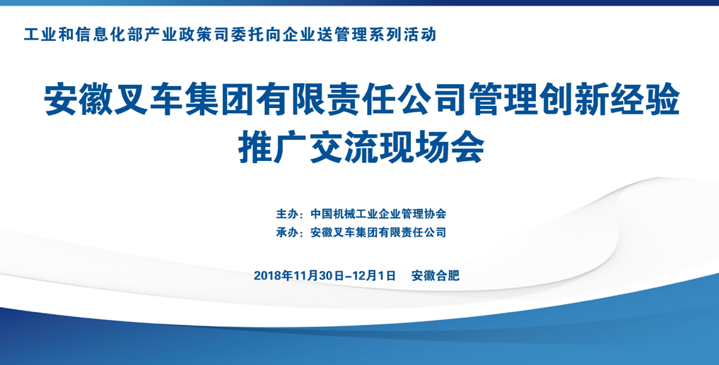 2018年11月29日-12月1日,工信部產(chǎn)業(yè)政策司委托中國(guó)機(jī)械工業(yè)企業(yè)管理協(xié)會(huì)(簡(jiǎn)稱(chēng)中機(jī)企協(xié))主辦、安徽叉車(chē)集團(tuán)有限責(zé)任公司(簡(jiǎn)稱(chēng)合力)承辦的機(jī)械行業(yè)“向企業(yè)送管理”現(xiàn)場(chǎng)交流活動(dòng)在安徽省合肥市隆重舉辦。工信部產(chǎn)業(yè)司產(chǎn)業(yè)組織處處長(zhǎng)匡佩遠(yuǎn),趙薛憶,中機(jī)企協(xié)理事長(zhǎng)孫伯淮,常務(wù)副理事長(zhǎng)李玲,副理事長(zhǎng)于中赤、張德進(jìn)、張愛(ài)群,以及來(lái)自機(jī)械行業(yè)的企業(yè)代表180余人參加了活動(dòng)。