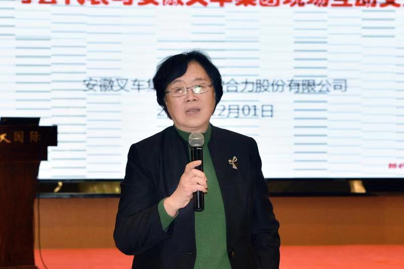 中機(jī)企協(xié)常務(wù)副理事長(zhǎng)李玲在機(jī)械行業(yè)“向企業(yè)送管理” 現(xiàn)場(chǎng)交流活動(dòng)--安徽叉車(chē)集團(tuán)互動(dòng)交流會(huì)上發(fā)言