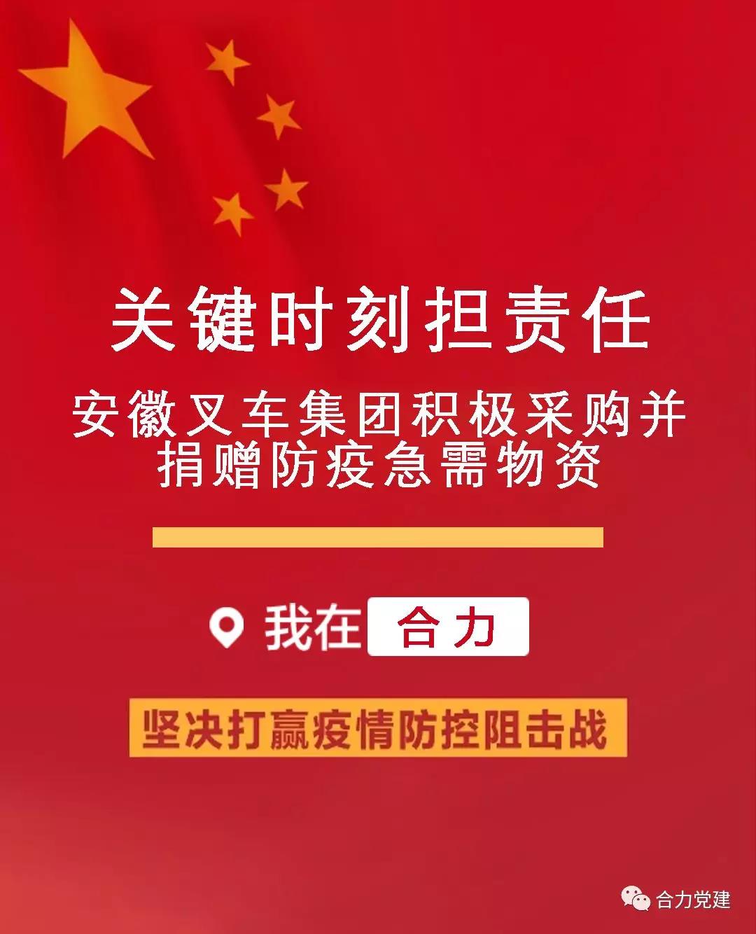 目前,安徽叉車集團已圓滿完成了上級交給的采購份額任務(wù),同時,還正在積極組織第二批海外采購捐贈物資訂購,相關(guān)手續(xù)正在辦理中。抗擊疫情,我們國有企業(yè)責無旁貸,定當與全體中國人民共克時艱、逾越寒冬,迎來春暖花開的勝利。
